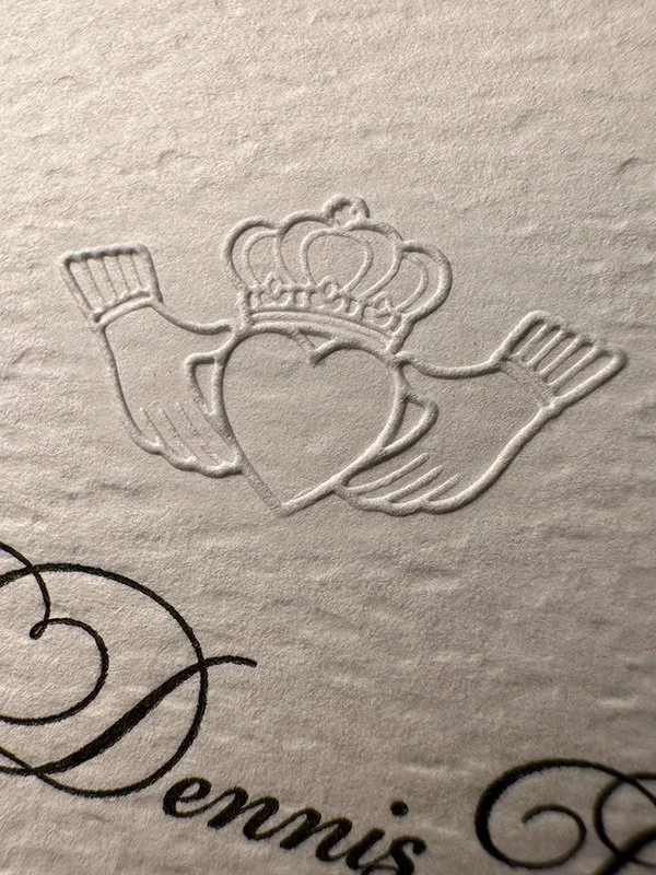Embossing raises your design from the surface of the paper, creating a sculptural effect you can both see and touch. Embossing requires the use custom-made dies, counter-dies and the skilled hand of our press operator to achieve crisp, precise results. Whether you’re after a subtle, monogram or a bold, multi-level logo, embossing adds a refined dimension to your print materials.